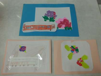 たけのこ学級では,校内や学校の周りに咲いているあじさいの花をよく観察して絵にしてみました。まずは,「ちぎり絵や貼り絵」であじさいの作品を作りました。
