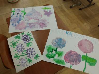 みんなそれぞれのあじさいの作品が仕上がりました。また,教室前に掲示しているので見に来てください。