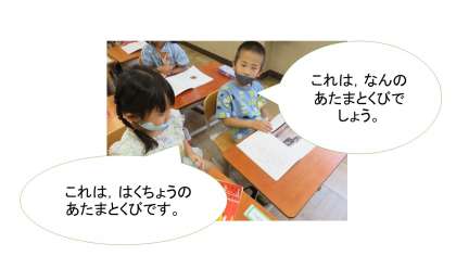 今日は,一人一つずつ作った「いきものくいず」をともだちと出し合いました。