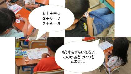 はじめはなかなかすらすらというわけにいかず,「同じカードでとまる。」と言いながらも何回も練習を重ねています。「やればやるほどできるようになるから,あきらめずに頑張ろう。」と声をかけるとみんな熱心にカードをめくっています。