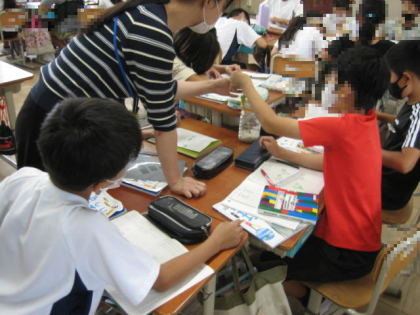 5年1組の教室をのぞくと,理科の学習でした。植物の発芽と成長について,まとめていました。