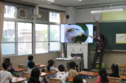 1年1組の教室をのぞくと,国語科の学習でした。鳥のくちばしをテーマに,伝えあう学習を進めていきます。