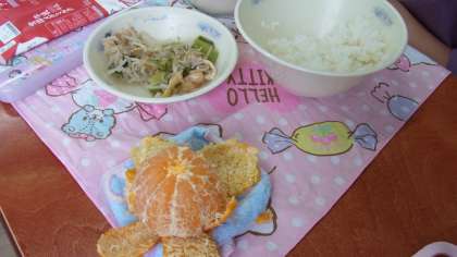 ・れいとうみかんがつめたくて,あまくておいしかったです。これからきゅう食を作るのをがんばってください。楽しみにしています。