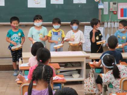音楽の時間は「ぶんぶんぶん」の曲をリズム打ち。
