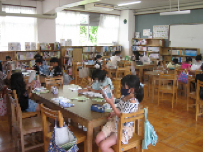 学校図書館で,大好きな本を読んで楽しみました。