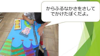 図画工作の時間は「みてみてあのね」の続きの絵を描きました。