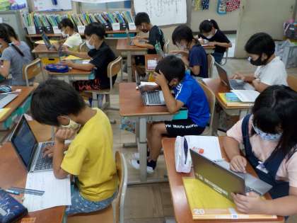 国語科「仕事のくふう,見つけたよ」の学習で,自分の調べたい仕事について本やインターネットを使って調べています。ギガ端末の使い方にも慣れてきて,調べ学習でも大活躍です!