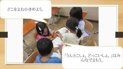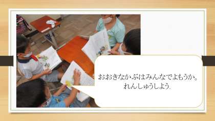 誰がどこを読むかを話し合って決めた後は,みんなで楽しく練習していました。