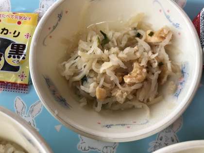 ・肉じゃがのピリ辛みそ味が,ごはんに合って,おいしかったです。あと,みそのあじもしていました。きりぼしだいこんがシャキシャキ音をたてていて,おいしかったです。
