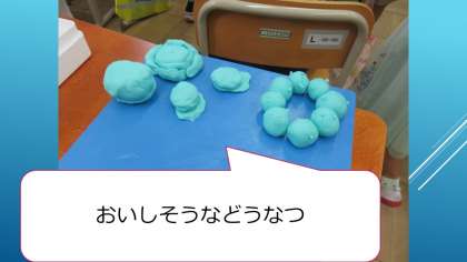 残念ながら教室に帰ってきた子どもたち。砂の代わりに粘土で造形遊びを楽しむことになりました。