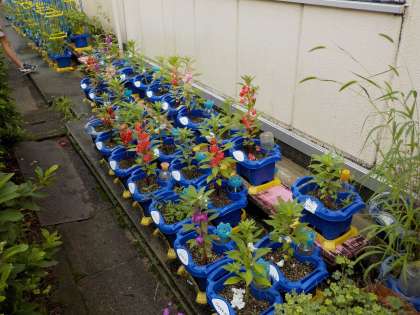 理科の学習で,ホウセンカの観察をしました。きれいな花も咲いていました。葉,茎や花などを丁寧に観察して,観察カードに記録することができました。