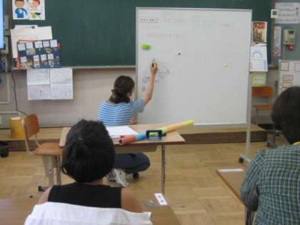 たけのこ学級の教室をのぞいてみると,算数の学習をしていました。合同な図形について,協力して取り組んでいました。