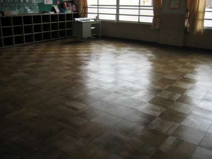 夏休みの間に,各教室の床のワックスがけをしました。先生たちは,2学期から子ども達が来ることを楽しみにしながら,ていねいに愛情をこめて行いました。おかげで床はピカピカになりました。