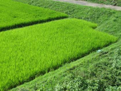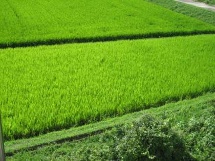 暑い日が続きます。しかし,その暑い夏の日射しをいっぱい浴びて,稲が大きく育っています。時折吹く夏風に,稲が気持ちよさそうに揺らされていました。写真なのでその様子をお見せできないのが残念です。