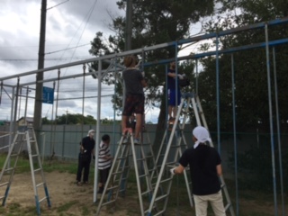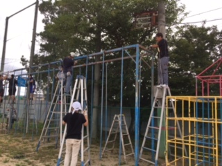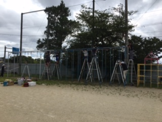 8月7日(土)午前8時より,大原野小学校おやじの会の方々が,運動場の遊具のペンキ塗りに取り組んでくださいました。設置されてから年月が経った遊具は,塗装が所々剥がれ落ち,サビも出てきていました。子ども達が使う遊具だから,とのご好意で,多くの方が協力してくださいました。この日はサビ落としと下地塗りでした。この続きは,21日(土)です。蒸し暑い中,本当にありがとうございました。