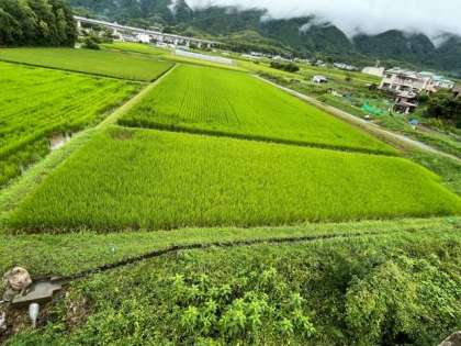 雨の日が続いています。時折晴れ間がのぞくもののすっきりとしない日が続いています。そのような天気の下で,6月に地域の方とPTAの方と教職員とで植えた稲が大きく青々と育っています。