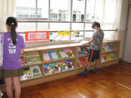 9月1日(水)より,学校図書館にて,『新着図書フェスタ』を開催しています。楽しそうな本ばかりで,子ども達は早く読みたいと思っているようです。期間は9月7日(火)までで,8日(水)から新着図書の貸出を始めます。