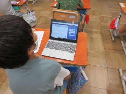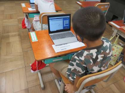 2学期初めてのタブレット学習。朝からとても楽しみにしていた子どもたちでした。