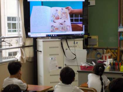 ブックプロジェクトが絵本「かわいそうなぞう」の読み聞かせを撮影したものをみんなで見ました。ギガ端末の操作にも慣れてきて,係活動でも使っています。コロナ渦でみんなの前で話したり,発表等ができにくいものも,ギガ端末を使って写真や動画を撮影して,みんなに知らせています。