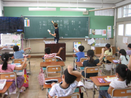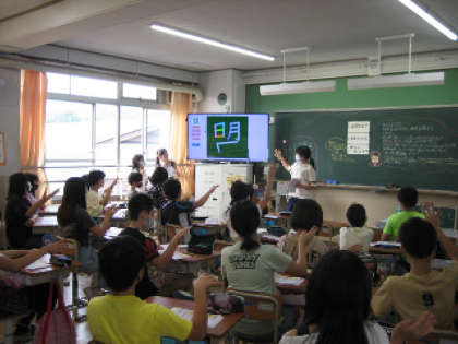 空中書きで,体全体を使って新出漢字の学習をしています。