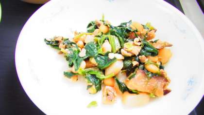 肉みそいためは,にんにくやしょうがをきかせた,大豆たっぷりの炒め物です。
