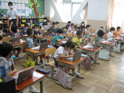 1年生もGIGA端末で『ミライシード』に挑戦しています。