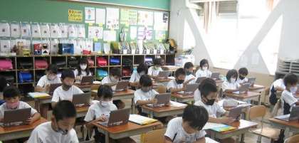 毎週火曜日と金曜日の朝学習は,ギガ端末を使ってデジタルドリルに取り組んでいます。みんな集中して意欲的に取り組んでいます。
