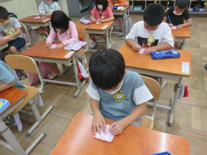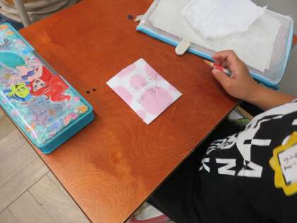 「来年の1年生にプレゼントしてあげたい。」という意見が出ました。そこで先日色染した和紙を袋にして種を5粒プレゼントすることになりました。