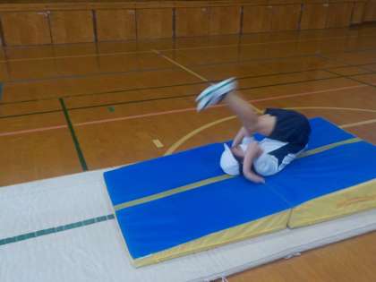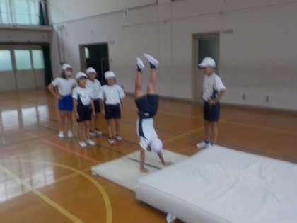 体育科の学習では,マット運動をがんばっています。自分ががんばればできそうな技に,練習の場を工夫しながら挑戦しています。3年生になってできるようになった技も増えて励みになっています。