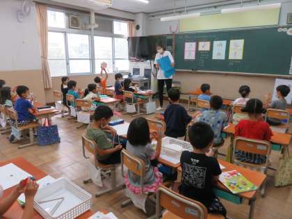 1つの楽器からいろいろな音色を見つけることに挑戦しました。友だちの見つけた音色にも耳を傾け,自分の音色と比べて楽しんでいました。