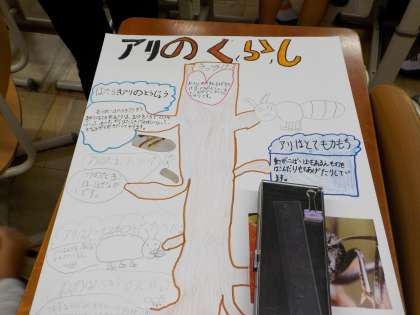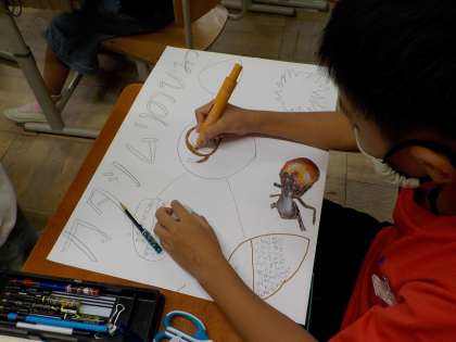 総合的な学習の時間「大原野ふしぎたんけんたい」では,自分が興味をもって調べた生き物や植物などのポスター作りをがんばっています。