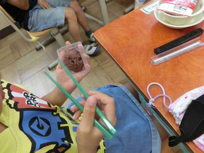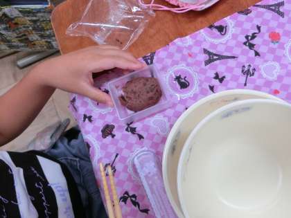 「あんこが苦手やねん・・・。」とおはしの先にちょこっと乗せて,食べている児童もいました。