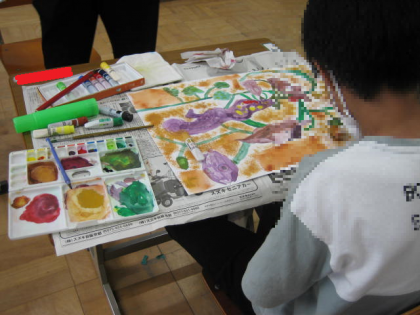 たけのこ学級 サツマイモの収穫を絵に表現しました
