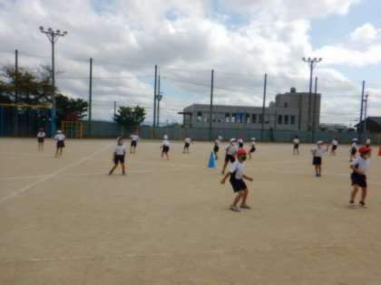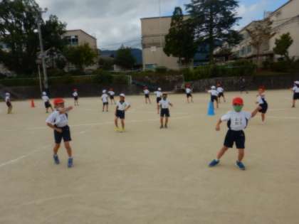 左右や前後の友だちを見て自分の踊る位置を確認しながら,