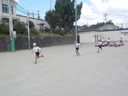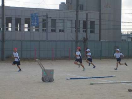 3年生は,体育学習発表会で80m走を走ります。スタートも上手にできるようになり,走るスピードも速くなってきました。ゴールまで全力で走りきってほしいと思います。