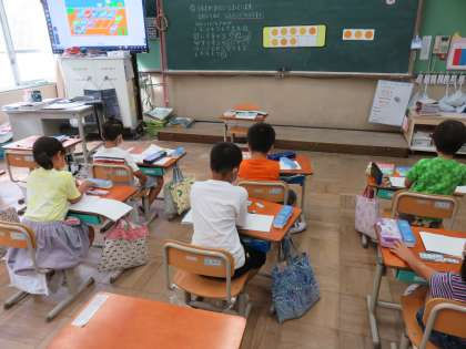 1年生は算数科の「たしざん(2)」の時間に少人数学習を取り入れます。