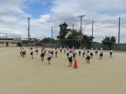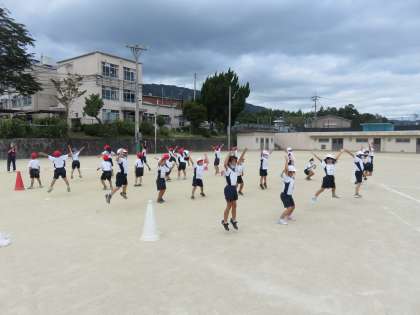 体育学習参観日が近づいてきました。今日は,団体競技の入退場の仕方,途中で踊るダンスの練習をしました。先週1回だけの練習だったのに,みんなとてもよく覚えていて自分たちでスムーズに移動することができていました。