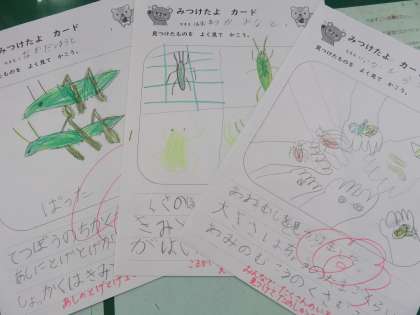 大きなバッタは手のひらサイズ!!それでも臆することなくどんどん触りに行く子どもたちにびっくりしました。