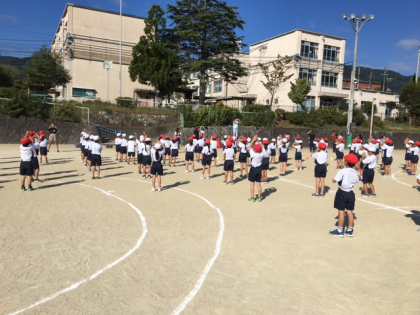 青空の下,低学年の体育学習発表会全体練習が行われました。