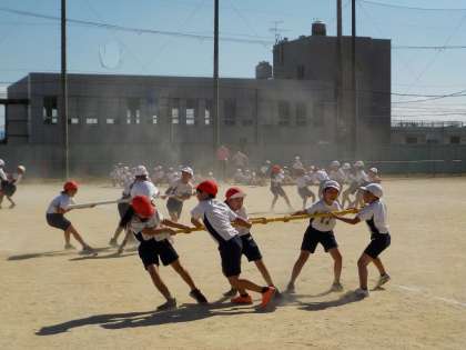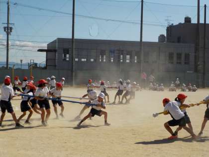体育学習発表会本番前の最後の練習では,両者ともに互角状態で熱い戦いを繰り広げました。本番の戦いがどうなるか楽しみです!