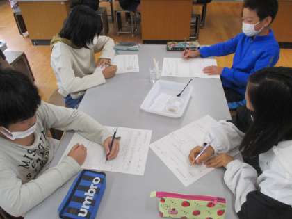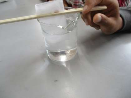 理科では,「もののとけ方」を学習しています。ティーバッグに入れた食塩を水に入れ,食塩が溶ける様子を観察しました。「ニョロニョロが見える!」「液みたいなのが落ちていき,無くなった。」などの気付きの声がたくさん見られました。