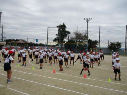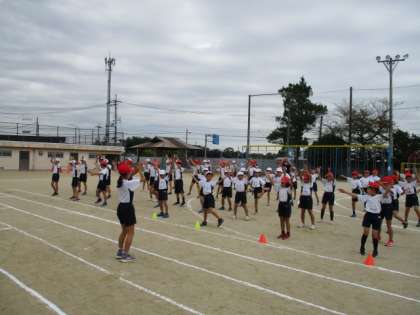 さわやかな秋晴れの下,体育学習発表会がスタートしました。