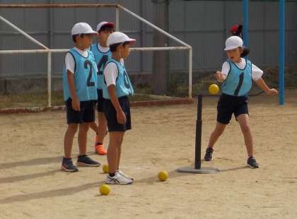 体育の学習では,ハンドベースボールが始まりました。今日は,初めてだったので,ゲームの場の作り方やルールを学びました。これから学習する中で慣れて好きになってくれたらと思います。