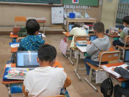 生活科の時間にみんなで見つけた大原野小学校の中の秋を友だちに伝えるカードを書きました。