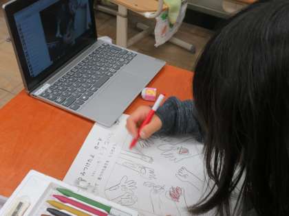 見つけた秋は,生き物の時と同じく写真に撮っていたので,タブレットを見ながらじっくり丁寧にかきました。