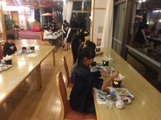 食事係のあいさつで、みんな一斉にごちそうをいただきました。