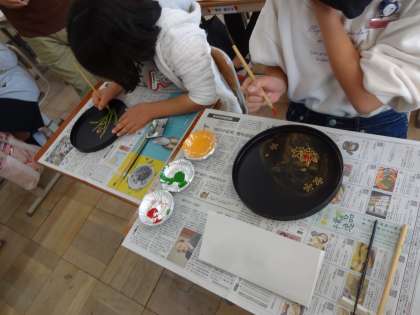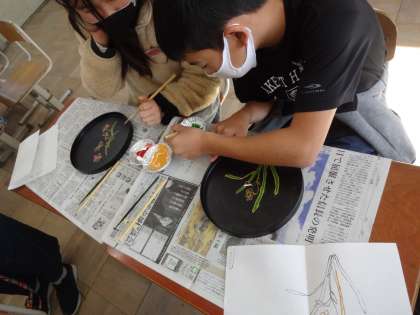 ラストは,色づけをしました。講師の方のお手本を参考に,「赤」「青」「緑」「白」の4色をそのまま使ったり,混ぜて使ったり…。工夫してとっても上手に色をつけていました。できあがった作品は実に素晴らしく,「早く持って帰りたい!」ととってもいい表情で喜んでいました。貴重な体験ができて,学びある楽しい時間を過ごすことができました!!みんなで体験できたことが,何より嬉しいです。