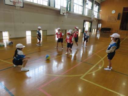 今日は1回目ということで,ルールや進め方を説明して実際にゲームに挑戦してみました。ころがしたボールに当たらないように上手によけるにはどうしたらいいか,当てるためにどんなころがし方をするのがいいのか考えながら学習を進めていこうと思います。