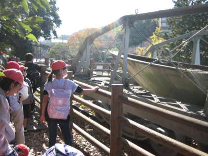 高低差が36メートルあったため,水を通しての舟の移動はできませんでした。インクライン(傾斜鉄道)で,台車に舟をのせて運びます。