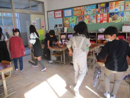 教室や廊下,それぞれの掃除場所で頑張ってきれいにしています。机の上も雑巾で丁寧にふいて,次の学習が心地よく始められます。一人一人が,頑張る姿いいですね!